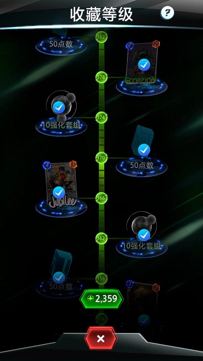 - Snap里基本所有单卡都挂在这个收藏等级树上,每获得一定收藏等级可以获得一张单卡。(笔者现在是2359级,还在收集3号池卡牌的漫漫路上……)