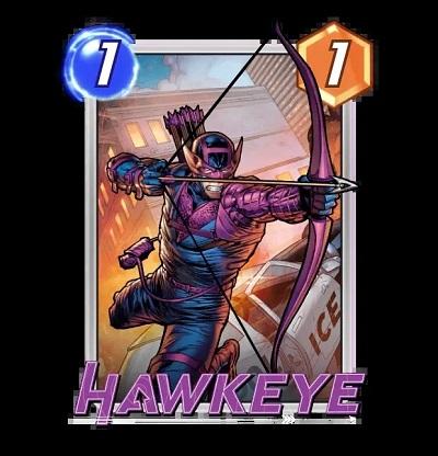 点评:1号池没开完之前勉强可用,进入2号池之后不可用,3号池之后反而又有可用之处了。触发效果的话是一个1费3攻,在追求最大化战力的套牌里是可以用的。在3号池众多强力1费面前并不是最好的选择,但是可以用来过度。为什么2号池左右的环境下不太可用呢,是因为他相当于预告了对手你下回合一定会在这一路出牌,让对手的星爵、火箭浣熊之类的牌(翻开时对手在同一地点同一回合有牌打出情况下触发效果)变得更好。这些牌在2号池左右的环境里还是有不少用量的,而进了3号池以后基本就会消失,所以鹰眼在进入3号池之后反而会变得更好。