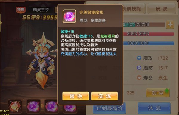 3、魔核洗炼能有机会洗出特效技能,让宠物更强。