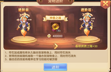2、进阶之后能提升宠物的各项资质上限;