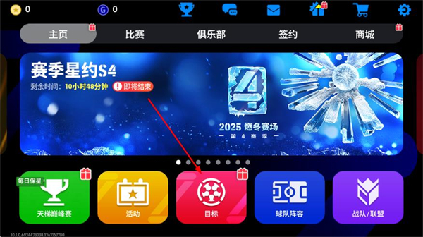 1、在实况足球首页,点击目标按钮,进入目标页面。