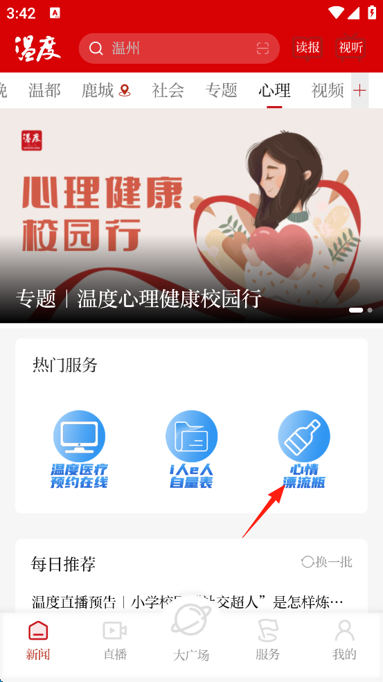 3、随后点击屏幕的“心情漂流瓶”。