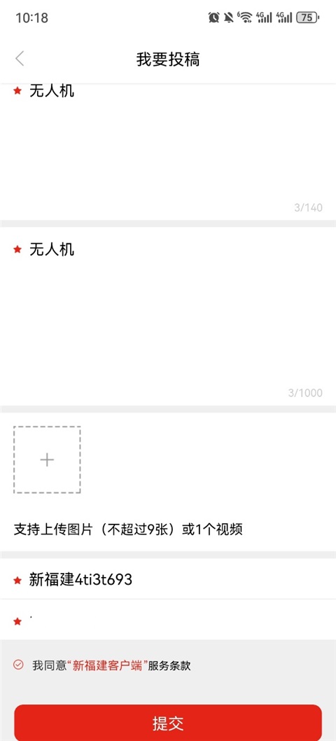 3、输入你想要投稿的标题以及内容,可附带图片进行提交(内容必须为真实,不可虚假投稿)。