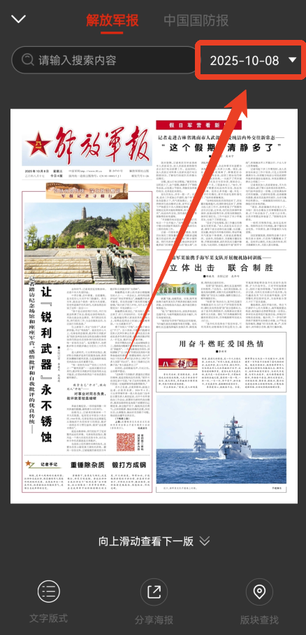 1、点击下方中间的【解放军报】按钮可以查看当日的报纸内容。