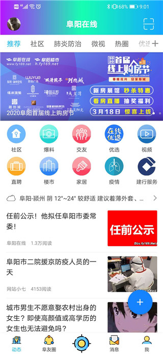 阜阳在线app是专为阜阳当地用户们打造的一款新闻资讯+生活服务的综合性服务平台。在这里用户们不仅仅可以了解到阜阳当地发生的大大小小的事件,还可以通过阜阳在线来提高生活的便捷性,例如查违章、查公交、查天气、交朋友、找美食、找装修等都是在软件的支持范围之内的。操作方面应该不是很大的问题的,界面的架构上都是比较主流的框架进行搭建的,可以说是只要是会使用大众软件的朋友们,在这里豆浆不是问题。而对阜阳在线app这款综合性服务软件感兴趣以及有需求的话,不妨试试看呢,说不定这里面便有你想获取的信息。
