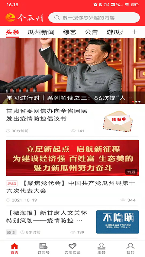 今瓜州app是瓜州县融媒体中心为当地居民们所建设打造的融媒体平台,以引导群众、服务群众为核心定位,集政务服务、民生应用、社交娱乐等内容于一体,为瓜州居民们提供了全方面的服务,也为传播瓜州声音、展示瓜州形象打造了又一宣传窗口,让大家能够更好的了解瓜州,爱上瓜州。平台当中有着极为丰富的新闻资源,能够实时为大家提供当地以及国内最新最热的资讯内容,还支持视频、直播的方式来让大家更加直观便捷的浏览新闻,让你足不出户了就能够轻松了解瓜州,相当不错。此外今瓜州内还有极为实用的便民服务版块,内有水电费缴纳、社保缴纳查询、违章查询、天气查询等实用功能,能够为大家生活上带来极大的便利,为大家节省大量的时间和精力。