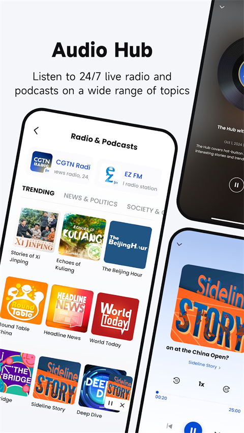 观看CGTN的实时直播和录播节目,包括新闻报道、专题访谈、时事评论、文化节目和体育赛事等。通过视频内容,你可以更直观地了解全球事件和现象。