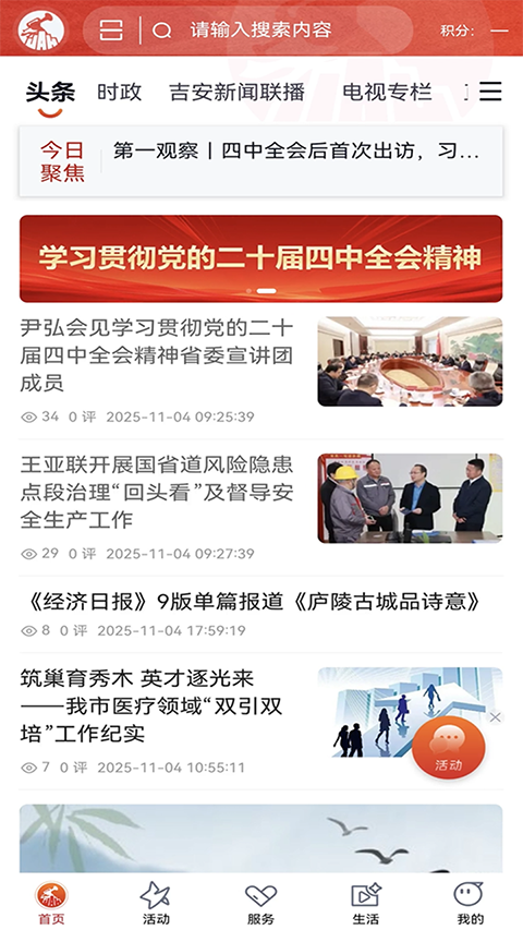 吉安号app是一款党政新闻服务软件,集党政新闻、社会民生新闻、问政、视频点播+直播、读报、看电视、听广播、融媒体矩阵、便民服务等为一体,与吉安智慧城市进行数据对接,是吉安市级融媒体平台软件。每天都会为用户带来大量吉安本地和周边的新闻资讯以及各种生活信息,让用户可以更加清楚的了解本地的动态。