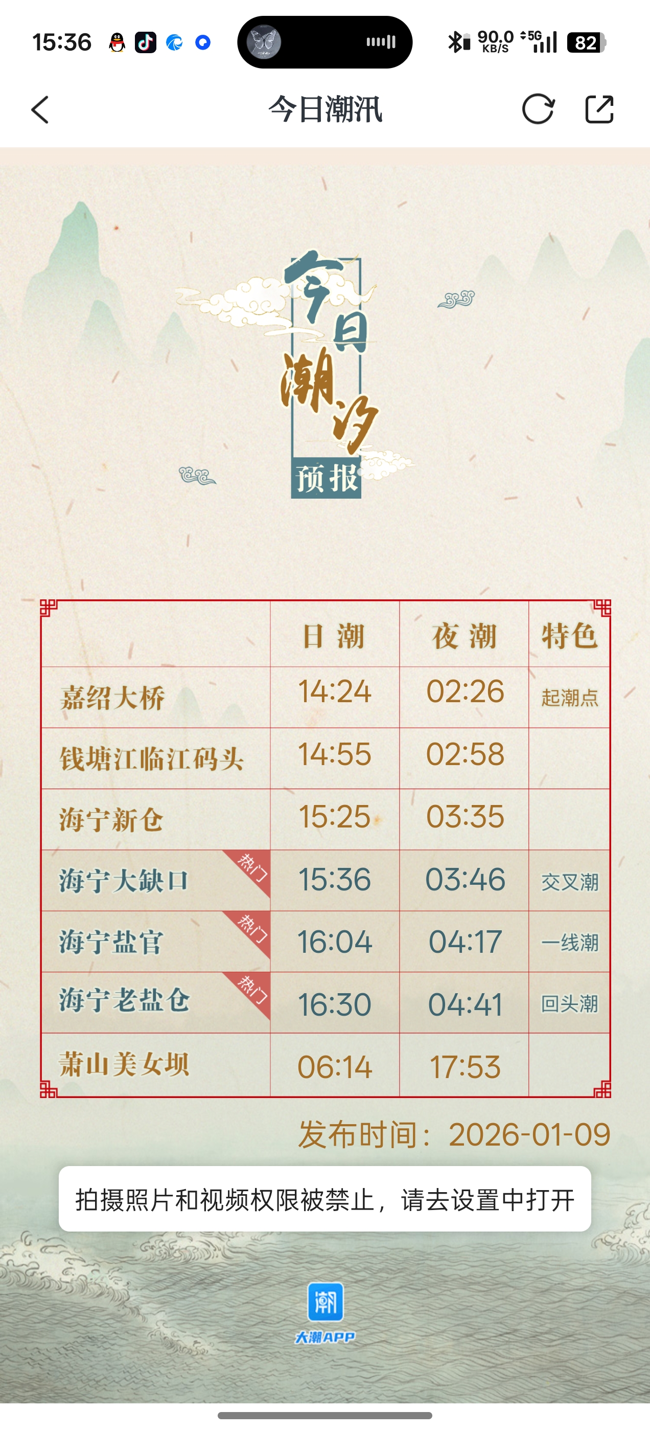2、就可以看到当天潮汐的具体时间了。