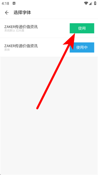 4、在字体选择页面,点击目标字体右侧的使用,完成字体更换。