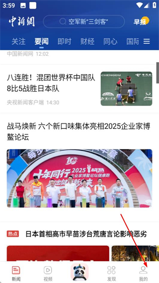 1、在中新网首页,点击底部的我的选项,进入个人中心页面。