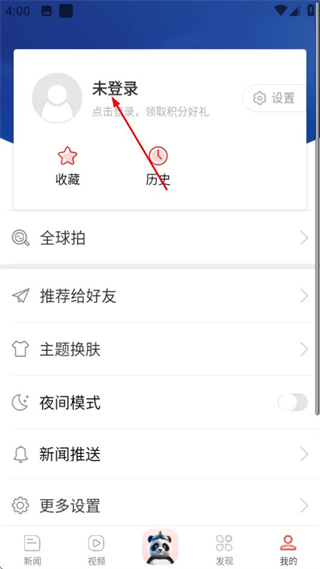 2、在个人中心页面,点击未登录区域,进入手机号登录页面。