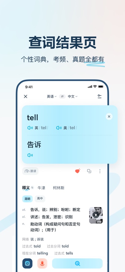学习翻译——输入或粘贴文本后自动检测语言进行翻译,并提供全球发音及参考例句;使用拍照翻译功能拍下外语论文,即刻获得中文翻译使用方法简单快捷。