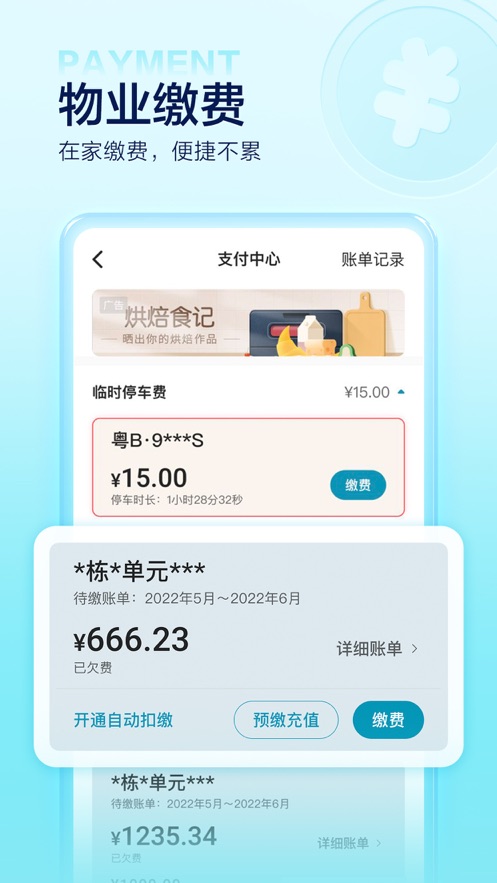 5.个人中心物业费用明细,邮包信息,维修,投诉进度……一目了然