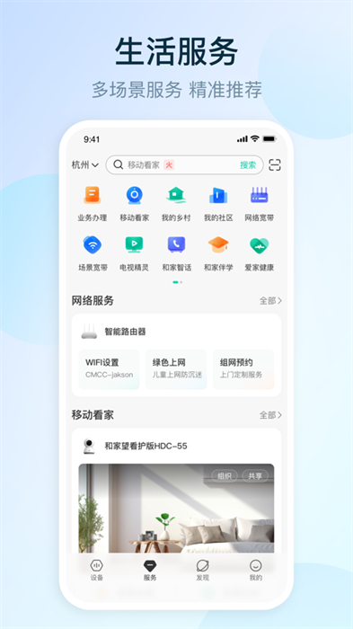 【移动业务】家庭宽带一站式自助服务(续包、优惠提速、宽带新装)、生活缴费