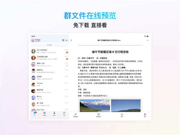 qq ipad版是腾讯旗下的一款社交聊天软件,是国内用户必备的app,提供强大的聊天功能,支持文字、文件、图片、音乐等信息发送功能,还可以实时查看好友动态,一键搜索福附近好友,需要的朋友欢迎来绿色资源网下载!