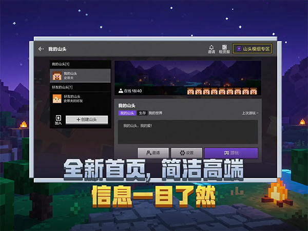 —“我的山头”租赁服加模组功能正式上线!即刻体验便捷模组管理,轻松安装配置各类精彩内容;独有邀请机制确保联机安全私密,智能存档备份守护游戏进度,灵活权限设置助力高效管理