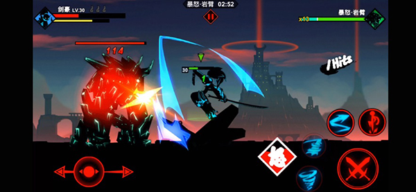 在核心玩法基础上,游戏采用了经典火柴人2D横版的过关模式,根据手游的特点不断的进行调优,配合模拟摇杆的操作系统让玩家即使在手机上也能尽享流畅战斗。同时游戏还有浮空连招、必杀闪现等设定,带来绝对极致的热血格斗体验。