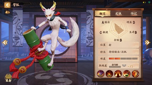 参团技巧:团战中的管狐更是如鱼得水,范围性的技能效果让地方式神肯定是十分头疼。站位在己方辅助附近,由于技能自带的减速效果,所以利用灵活的走位可以躲避很多敌方式神的进攻。十分惧怕控制的管狐一定要注意躲避敌方控制型式神,优先击杀控制,或从侧面进场限制敌方后排走位,为己方的突进式神创造机会。大招的疯狂攻击效果很适合来抵挡敌方的集体突进,可以优先消耗敌方的血线,最好不要留到追击,虽然可以移动但是限制较多,很难发挥出全部实力。