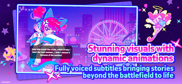 2、兼有跑酷的动作玩法和音游的快速反应,并且不同小姐姐角色拥有的属性区别,也让游戏充满了策略挑战;