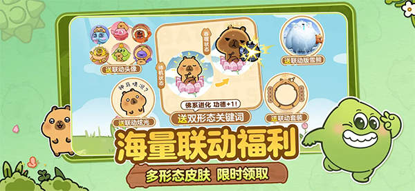 活动内容:可爱的卡皮巴拉小黄豚即将做客波拉哩星球,联动福利提前享!领取小黄豚联动神秘礼物兑换道具和限定动态头像!还有超大+珍宝箱+波拉哩黑洞+奇妙星宝箱等你来领!登录游戏收集道具带回家!