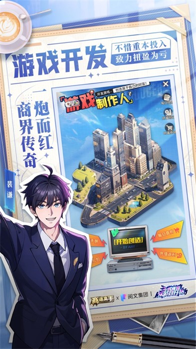 1、精美的游戏画面设计,在游戏中有多种玩法等你,让你亲身体验一番创业之旅,还有许多的美女邂逅哦。