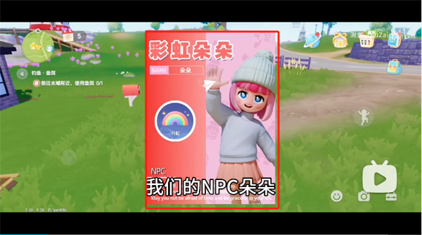 2、当彩虹天出现时,玩家需要进行NPC朵朵的寻找,不同的彩虹天朵朵出现的位置不同哦,可以是城区,也可能是花田;