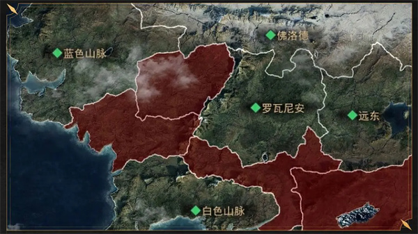 而各位战术家可从南方白色山脉、西方蓝色山脉、北方佛洛德、中部罗瓦尼安和远东五个区域中选择建立自己的根据地来发展。