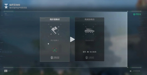 高价值目标:分为据点和敌方载具两种,通过鼠标中键或者自定义的标点案件对准标记后,按“战术支援”按键(就是平常放导弹的面板)选择高价值标记。标记后会向所有玩家广播任务,完成之后全体获得一定分数奖励,指挥官更是会获得大量分数奖励。