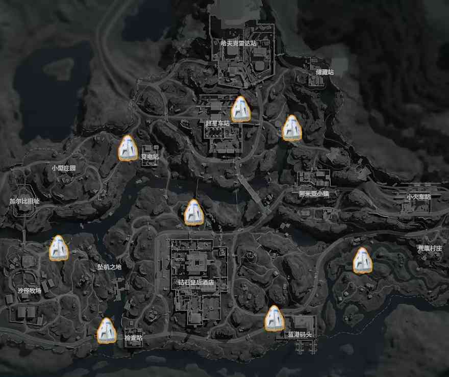 长弓溪谷这张图是我比较推荐大家去找或者抢空投的,空投降落点位有八个而且还分散一些,除去超星车站和钻石皇后酒店的三个点位之外,其他五个点位周围的物资不是多么丰富,很适合爽吃。