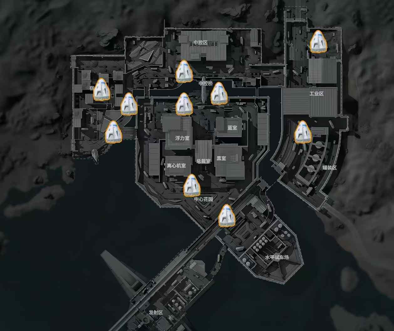 航天基地的空投降落点位是最多的一张图了,除了工业区两个点位之外其他八个点位都比较集中,不多说了,堵桥来(不是)!