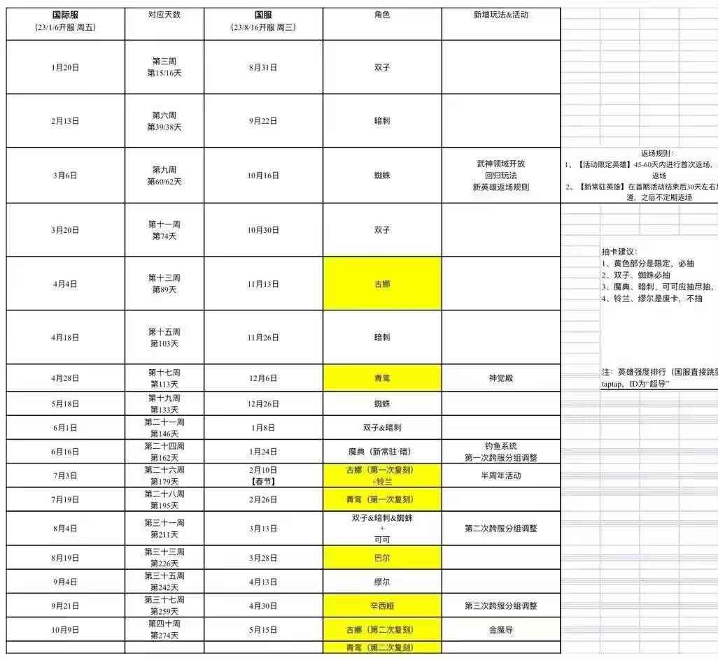 ④开服前七天建议搞2个9星就行拿活动奖励10星奖励没必要强行花取大代价换不然很有可能会打乱后面的节奏,但是如果有资源搞到10星还是可以搞的(实在是非的不行就只有升史诗卡到9星拿活动奖励了,注意!史诗卡升不到10星只能升到9星)。第8天之后看看有哪些角色培养强点的角色,不是欧皇的话先培养我说的那3张传说级的卡就行别升到9星了,我还是比较推荐只升2个角色到9星,因为后面保不准就出2张一样的光暗角色了(从第二周开始就可以开始遣散角色换英雄王了,英雄王慢慢换就行了,没必要每周都换,不然速度跟不上消耗)。