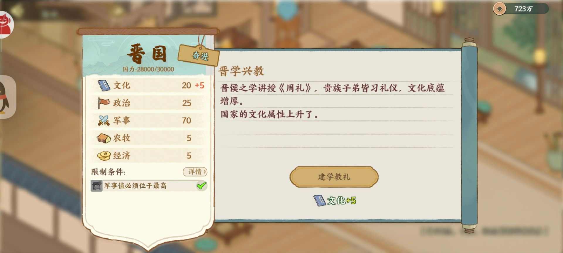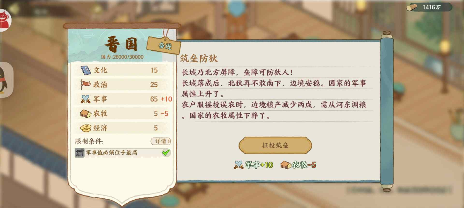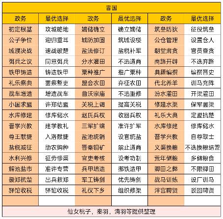 如果你选晋国,就主要选加军事政治农牧的选项。