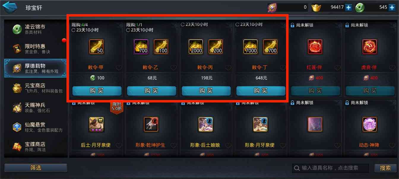 tips:微氪玩家或氪佬玩家搭配“井井有条”活动可分多个阶段购买敕令礼包,在第一个阶段购买68元或其他金额的礼包,等下一个阶段开启时再购买648元的礼包,尽量使“氪金收益”最大化。