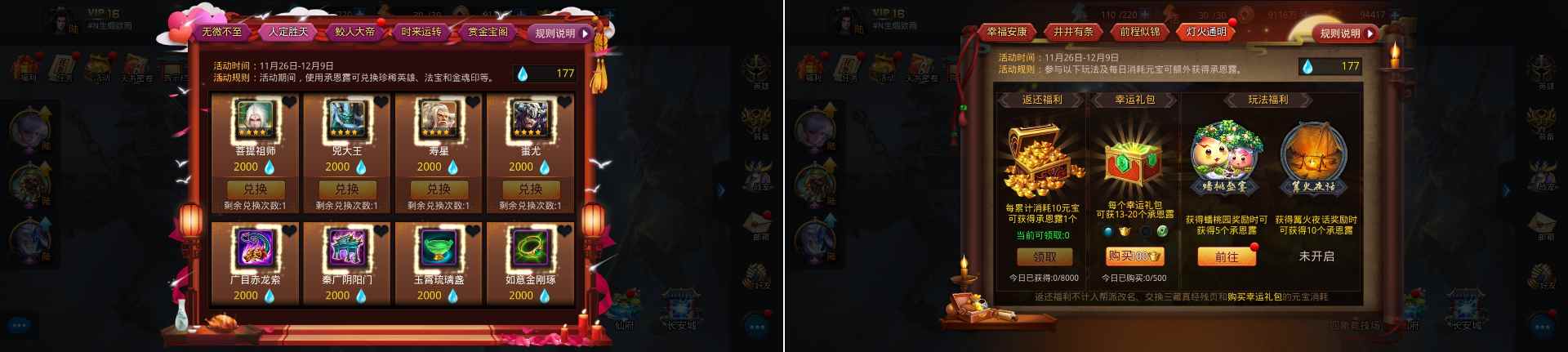 活动最后一天的时候(12月9日),如果你的元宝数目不足2w或者是承恩露不足2000,可在