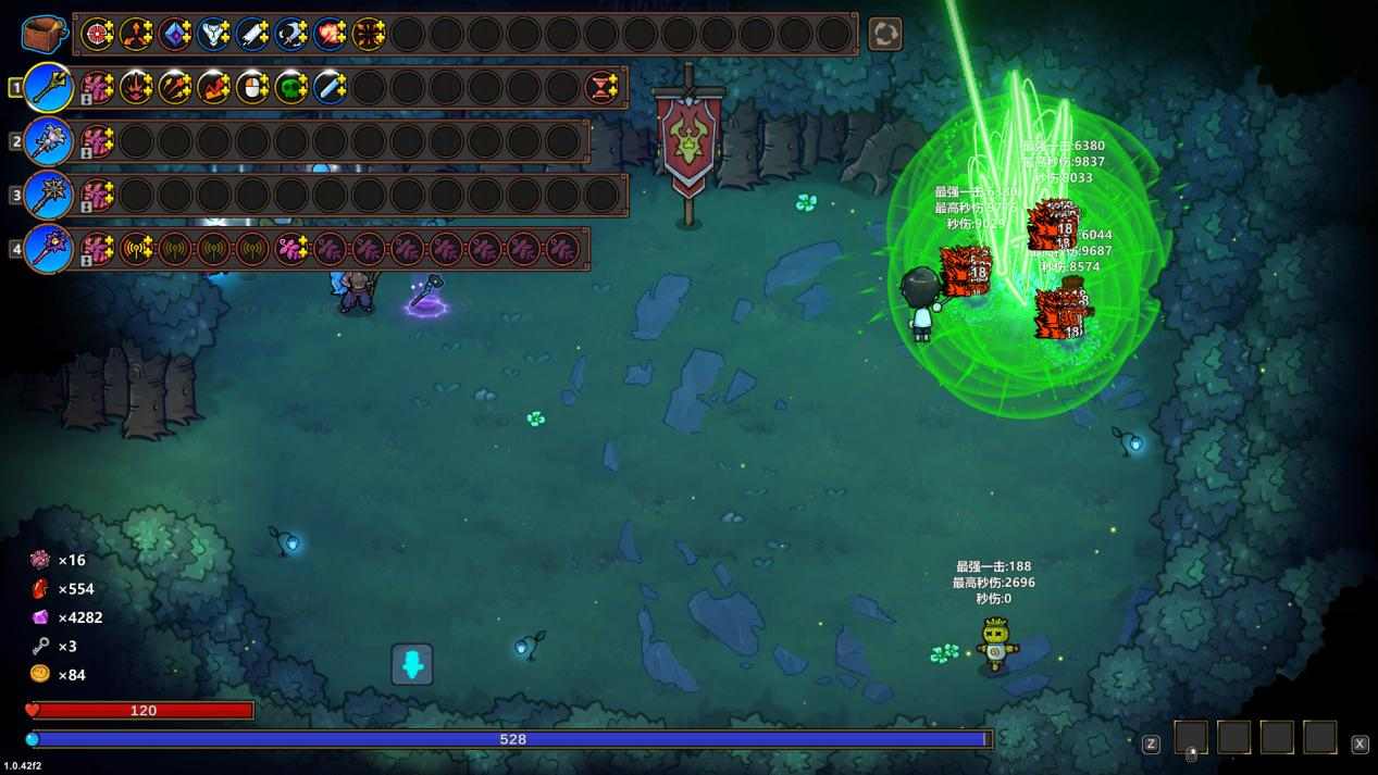 游戏的版本在不断更新,玩法越来越多,一些不合理的法术效果也在不断优化,玩家可以发挥自己的奇思妙想不断创造出各种新玩法。度过了新手期,玩家可能会期待更具挑战性的BOSS。有没有可能出一个解谜玩法,每个关卡,给你几根法杖,几个1级法术,按规定打出指定秒伤才能过关的那种,应该也会很有趣吧。
