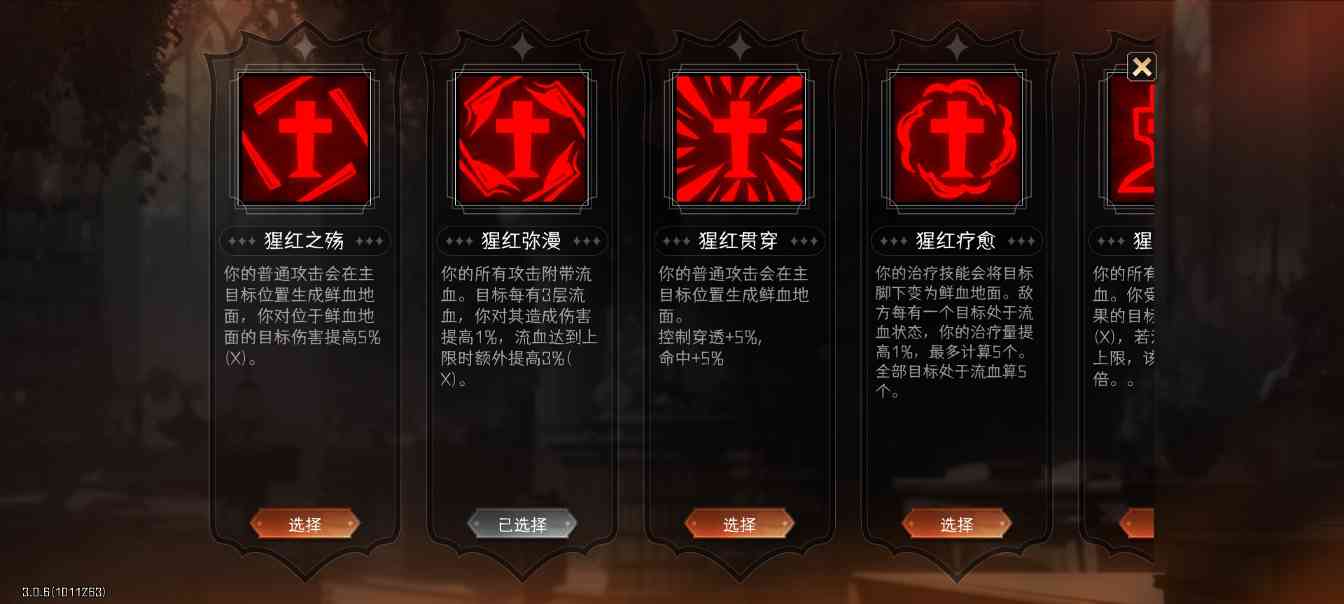 狂血之击:两条劈砍抗性,触发流血,普攻触发,两个鲜血地面额外目标